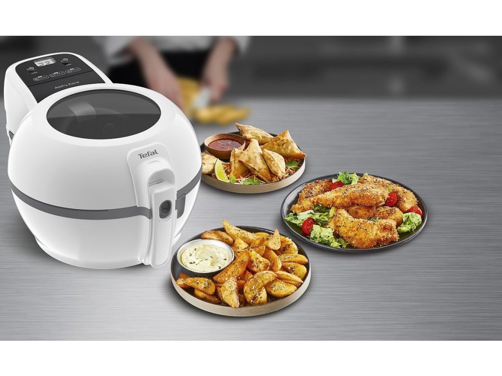 I denna moderna och praktiska varmluftsfritös Tefal Actifry Extra kan du snabbt och enkelt tillaga dina krispiga pommes frites eller annan friterad mat - och på ett mycket hälsosammare sätt!