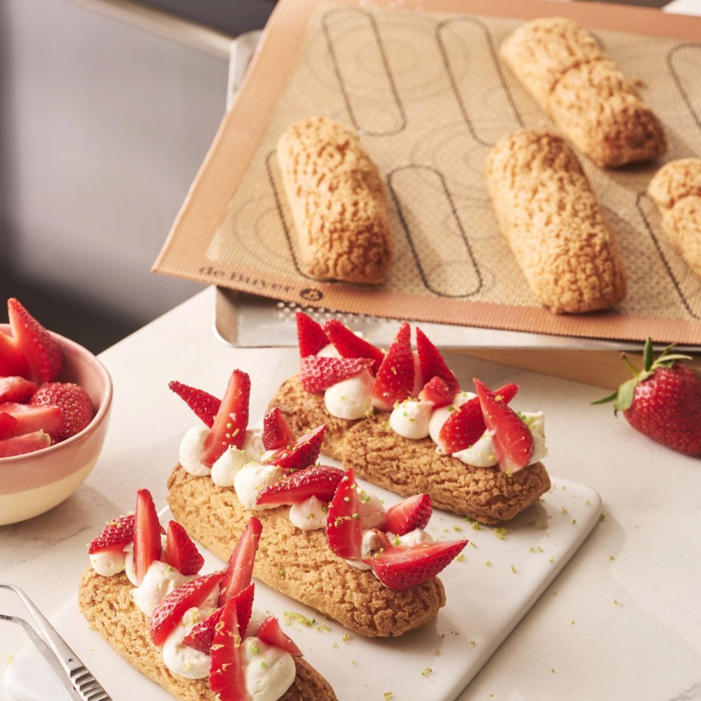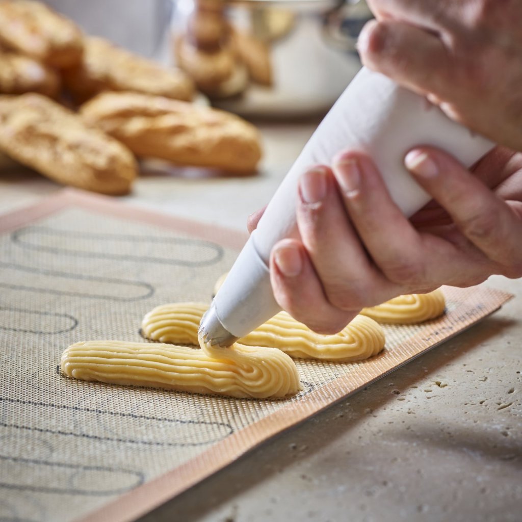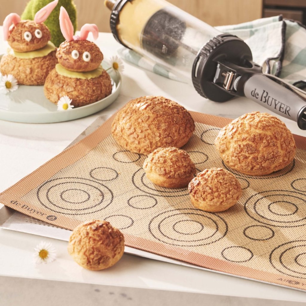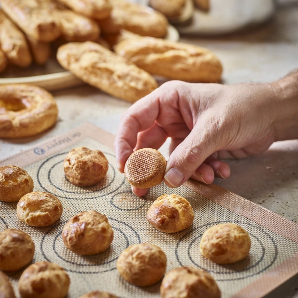- Perforerad silikonbakmatta de Buyer AIRMAT är speciellt utformad för att tillaga smördeg som vindsnurror, éclairs eller Paris-Brest-bakverk
