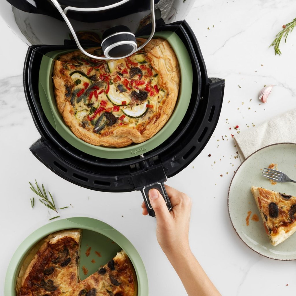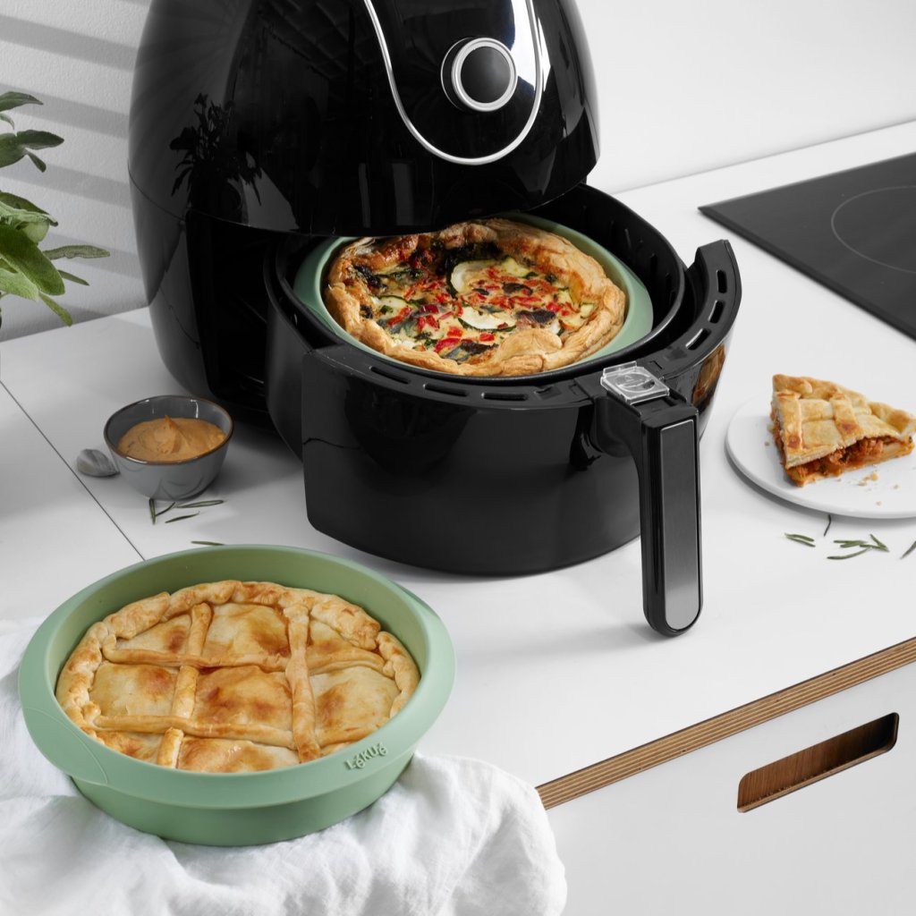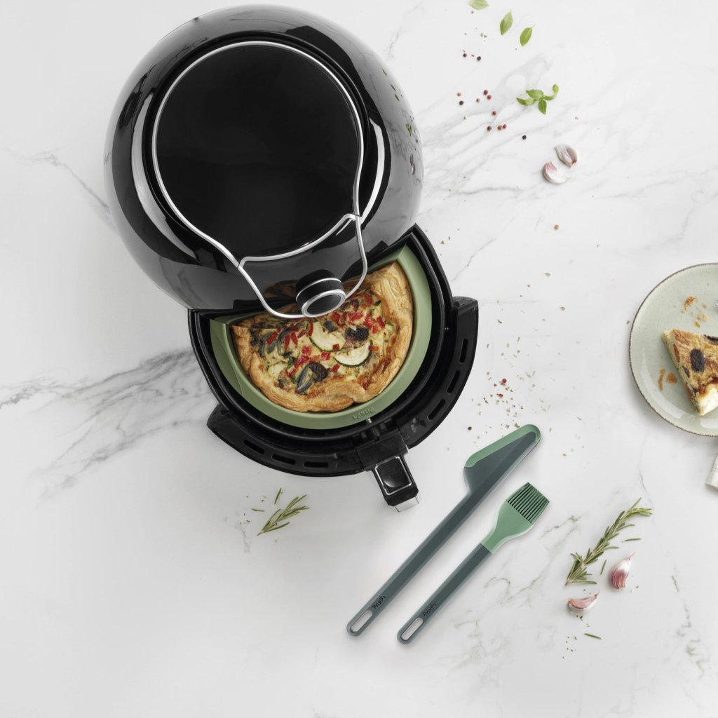 - baspaketet för varmluftsfritösen i grönt är ett praktiskt set med tre tillbehör som underlättar hälsosam och bekväm matlagning i varmluftsfritösen