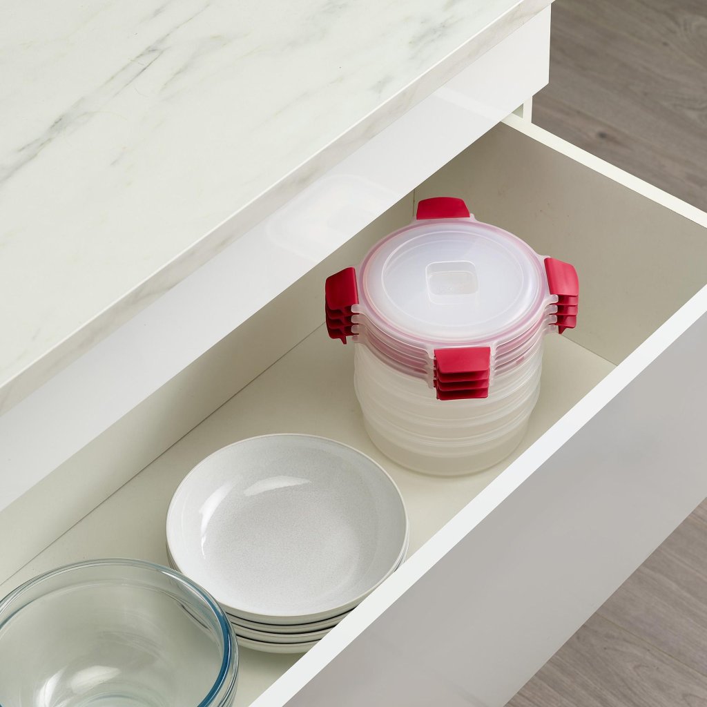 - Den runda formen är idealisk för förvaring av portioner av färdiglagad mat, rester från lunchen eller hemlagade mellanmål som du vill ta med till jobbet eller skolan.
