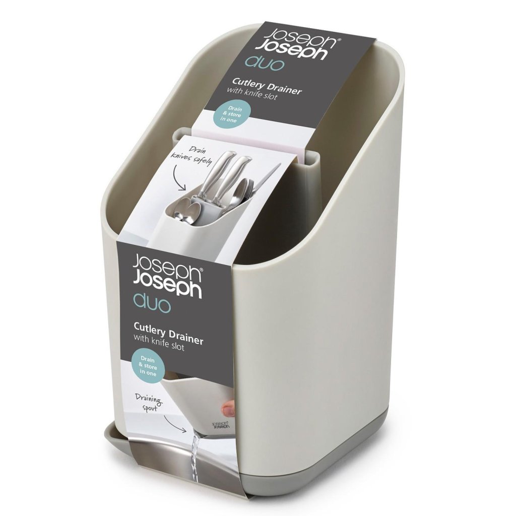 - Bestickavlopp från Joseph Joseph DUO håller besticken organiserade vid diskbänken efter tvätt och låter dem snabbt torka.