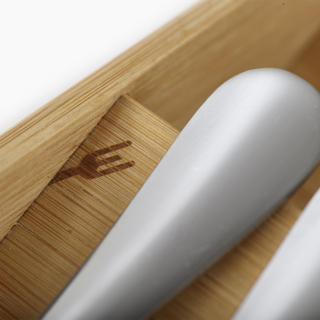 - Det naturliga bambumaterialet ger bestickbrickan ett elegant utseende och ger samtidigt en robust och hÄllbar konstruktion.