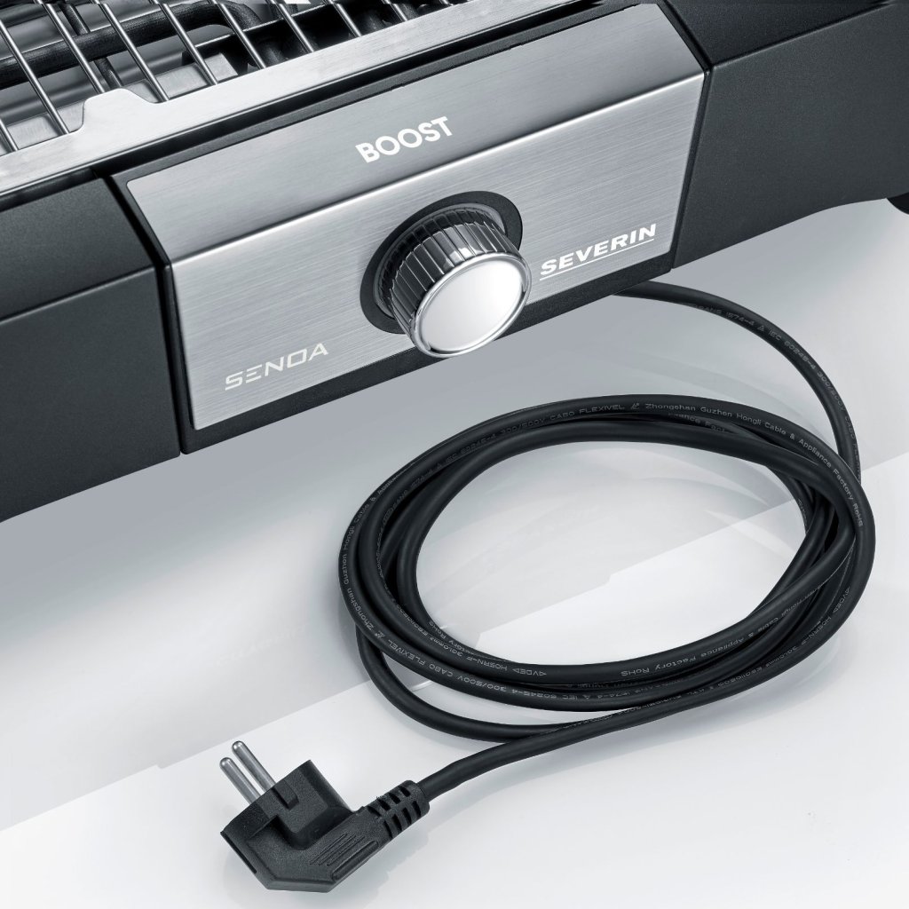 Bordsgrill med vindskydd för bekväm användning både utomhus och inomhus. Severin PG 8113 SENOA BOOST överraskar med en extra snabb uppvärmning - från 0 °C till 500 °C på 10 minuter. Termostaten med stor vridratt och tydlig skala gör den enkel att använda. De flesta av de löstagbara delarna underlättar rengöringen.