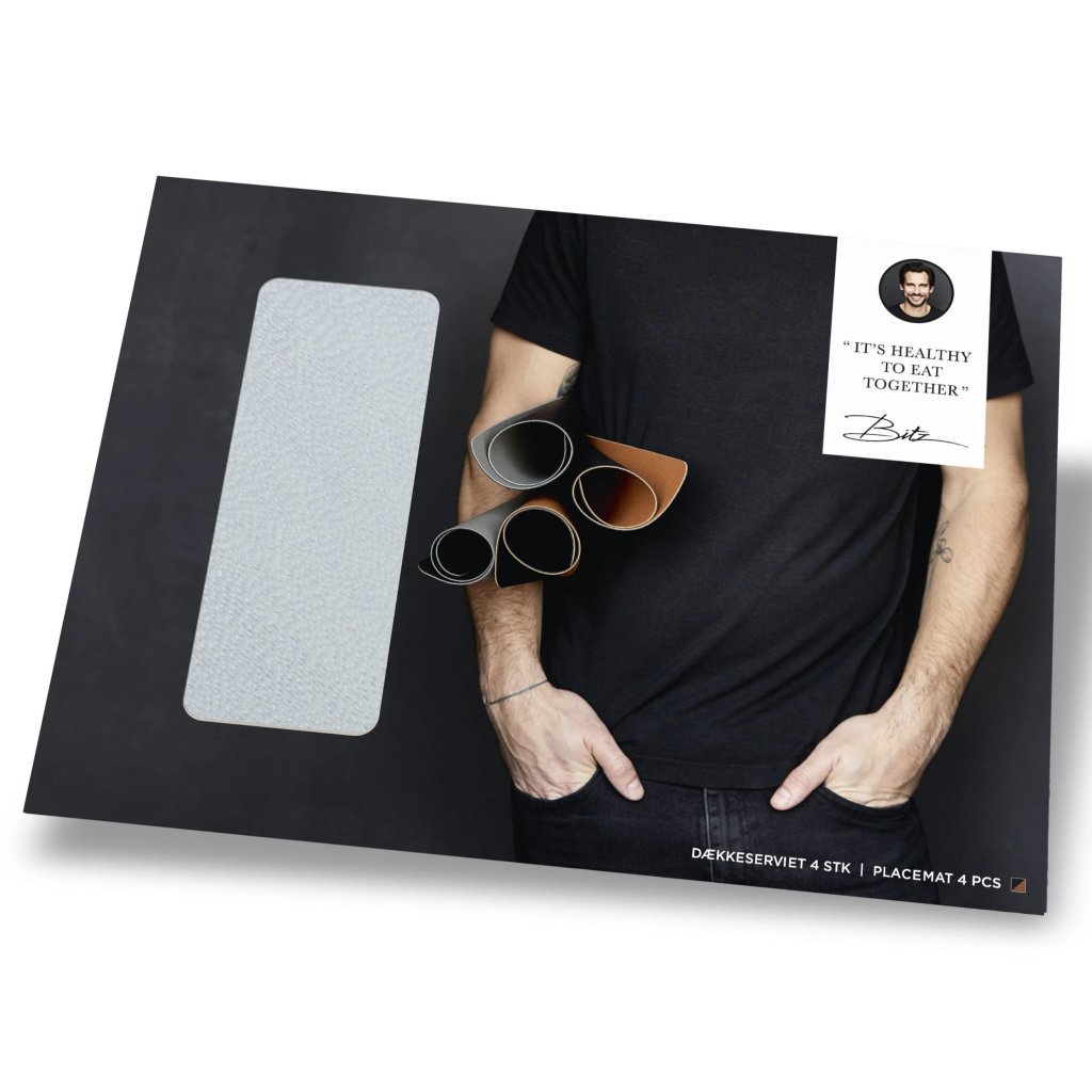 Bordstablett 46 x 33 cm, dubbelsidig, set i 4 delar, svart / ljus blå, PVC, Bitz