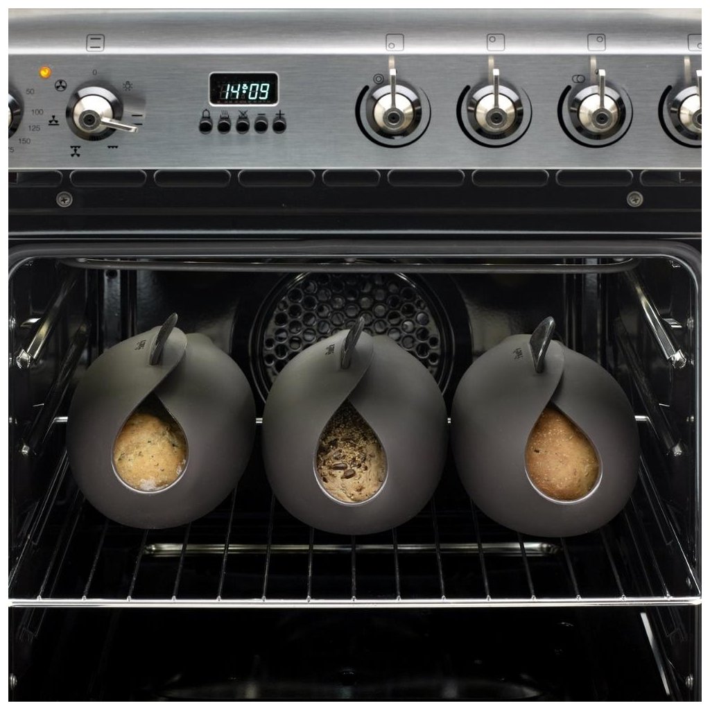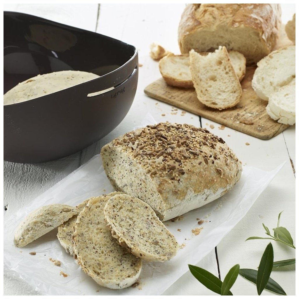 - formen på skålen är delvis stängd vilket gör att ånga kan cirkulera inuti, vilket gör degen fuktig och förhindrar att brödet torkar ut och ger det en knaprig, gyllene konsistens