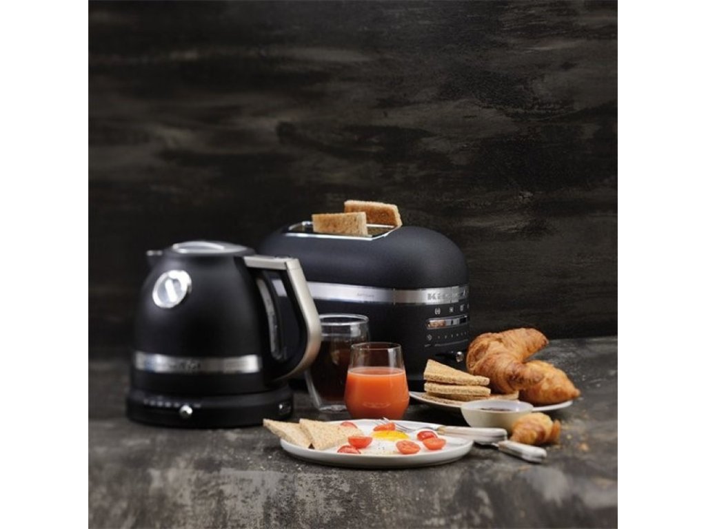 Det sägs att livet består av små saker. Så vad sägs om att börja dagen med gyllene rostat bröd eller avsluta den med en varm rostad smörgås? Artisan brödrost ger dig precis det nöjet. Förutom den eleganta designen har KitchenAid också utrustat den med ett antal användbara funktioner. Oavsett om det är den inbyggda sensorn som automatiskt lägger i och kastar ut uppvärmt bröd (och håller det varmt tills du tar ut det ur brödrosten), de sju rostningsinställningarna eller den praktiska avfrostningsfunktionen. Kort sagt, en ovärderlig hjälpreda som passar in i ditt kök på ett sådant sätt att du inte kan minnas en tid då den inte var en del av ditt liv.