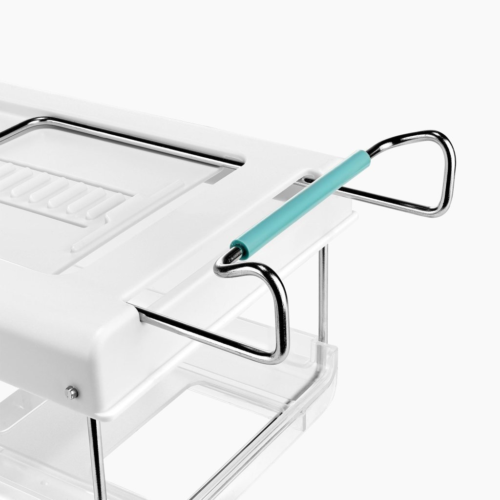 - Den installeras enkelt under kylskåpshyllan, så den utnyttjar utrymme som annars inte används och hjälper till att hålla huvudhyllorna fria för andra livsmedel.
