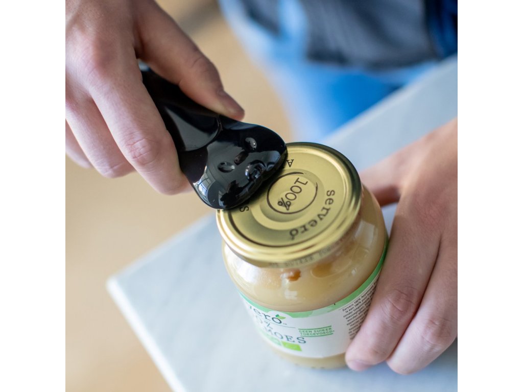 Du behöver inte muskler för att öppna burken, utan fingerfärdighet eller... en smart assistent som gör det åt dig. TOM burköppnare från Koziolöppnar burkar med ett enkelt trick - den lyfter enkelt locket genom att släppa in luft i burken och släppa ut vakuum.