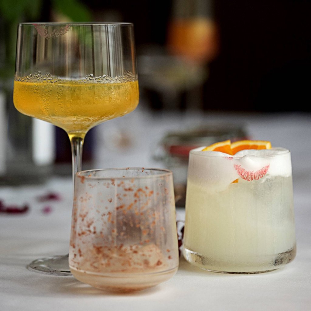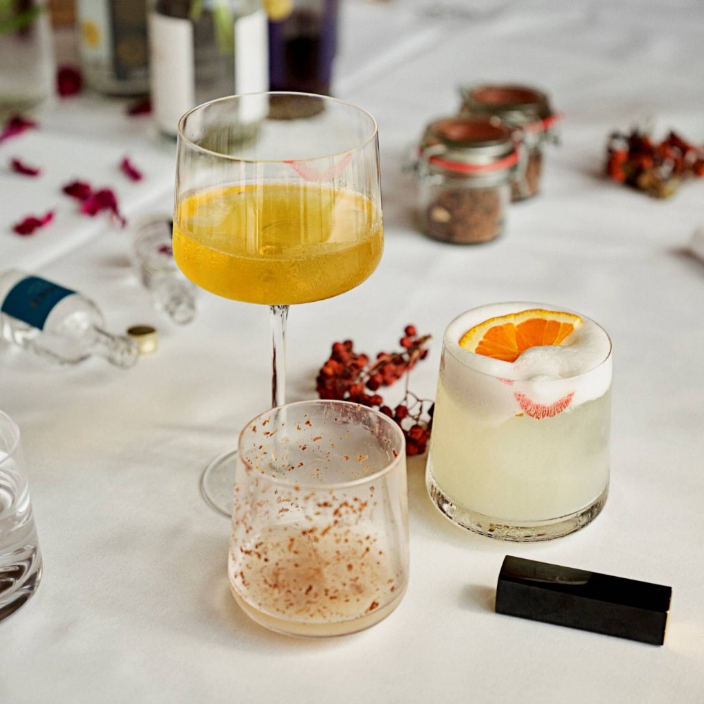 - uppsättningen med två glas sticker ut som en originell gåva för cocktailälskare och estetiker