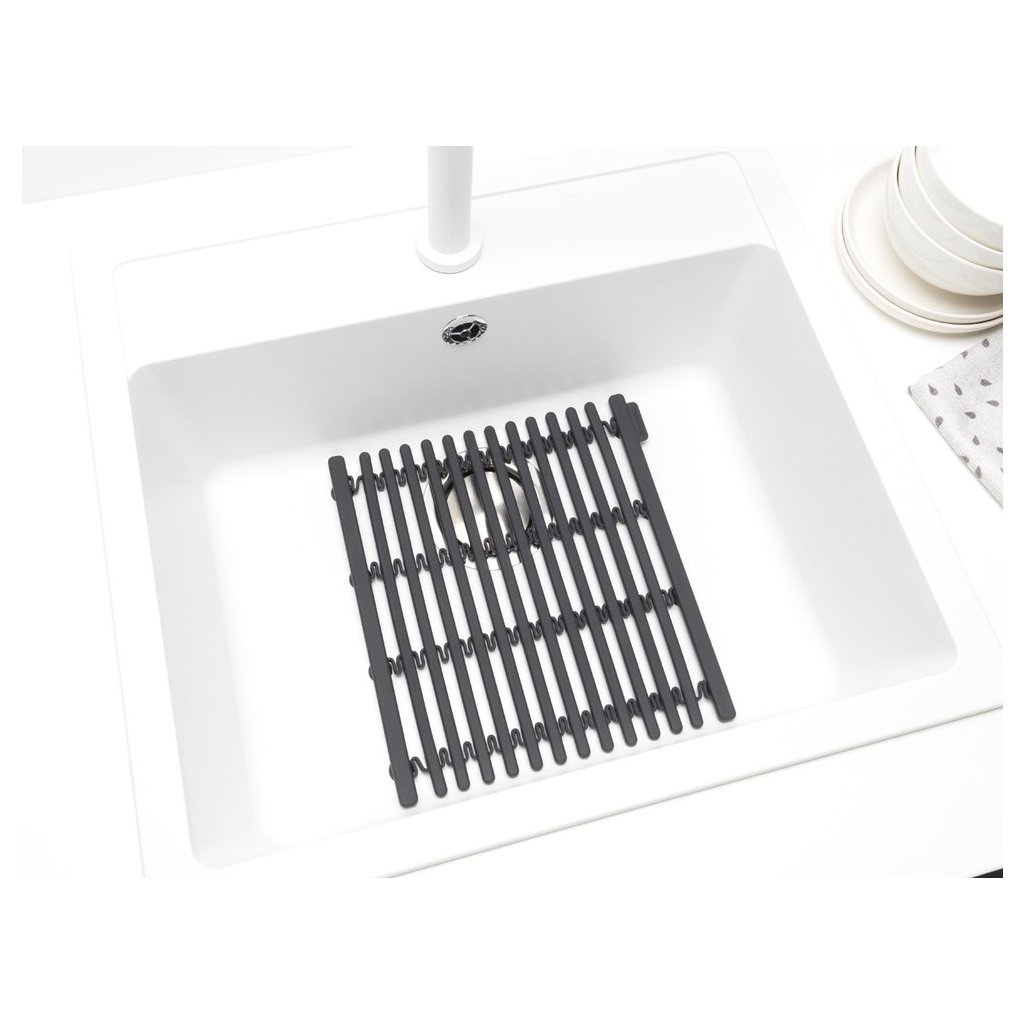 Du kan enkelt anpassasilikonmattan Brabantia så att den passar din diskho. Den flexibla kökshjälpen kan även användas som underlägg för heta stekpannor eller som torkmatta.