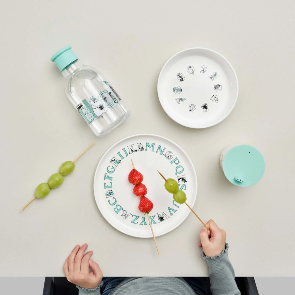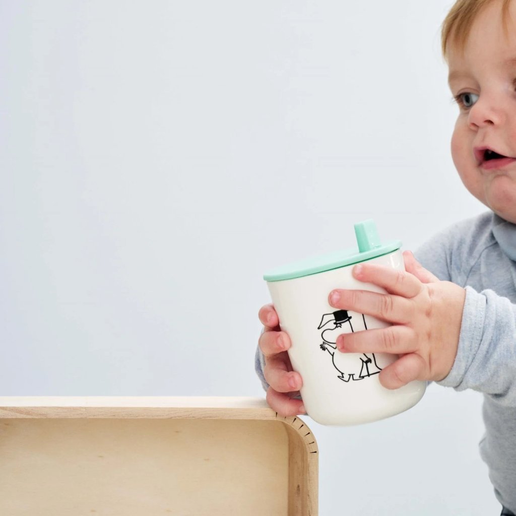 - Den praktiska drickskoppen MOOMIN ABC i turkos är avsedd som ett komplement till kopparna från barnkollektionen MOOMIN AB