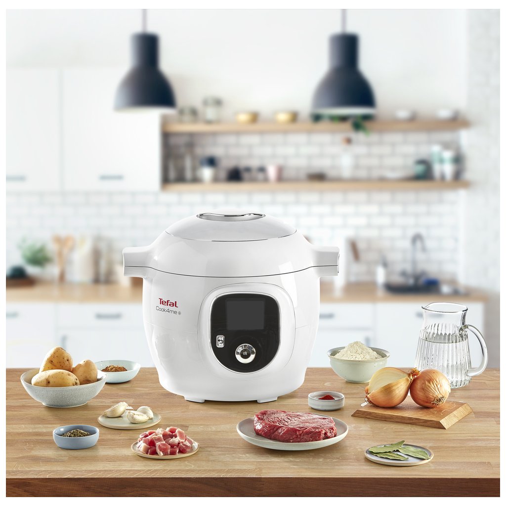 Om du älskar multifunktionella lösningar och prylar i ditt kök kommer du att bli glad över denna smarta gryta från Tefal Cook4me+. Du kan ställa in ett av sex tillagningsprogram: ångkokning, tryckkokning, klassisk tillagning med tre temperaturnivåer (mild - långkok, medium och hög - stekning/rostning) och temperaturhållning. Du kan också ställa in en av fyra inställningar - ingredienser, recept, egna inställningar och favoriter.
