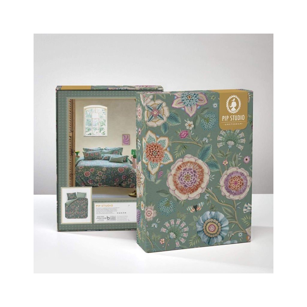 Enkelt påslakanset VIVA LAS FLORES 140 x 200 cm, grön, bomulls-percale, Pip Studio