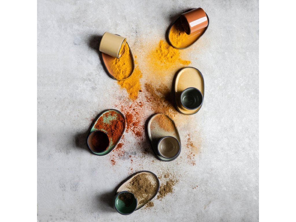 Moderna glasyrfärger inspirerade av kryddor är perfekt kombinerbara. Du kan kreativt skapa din egen matservering.