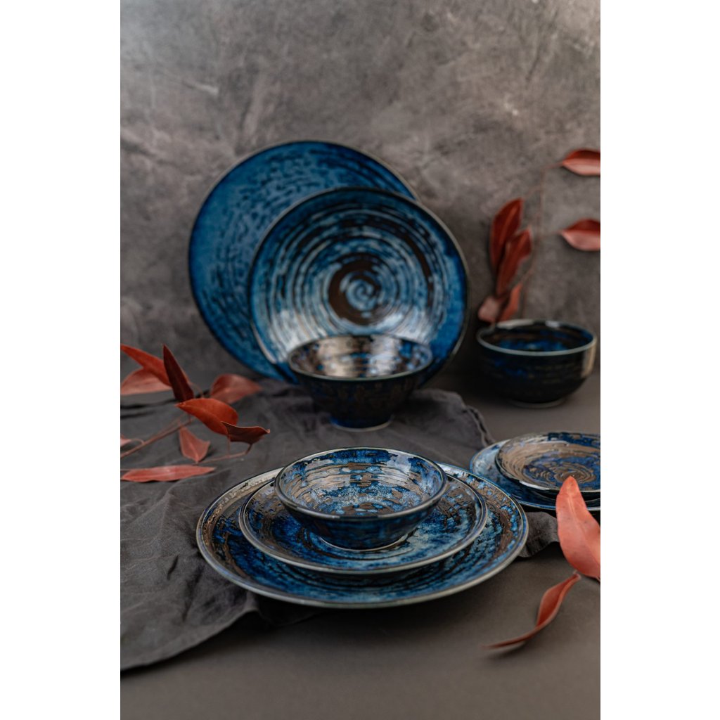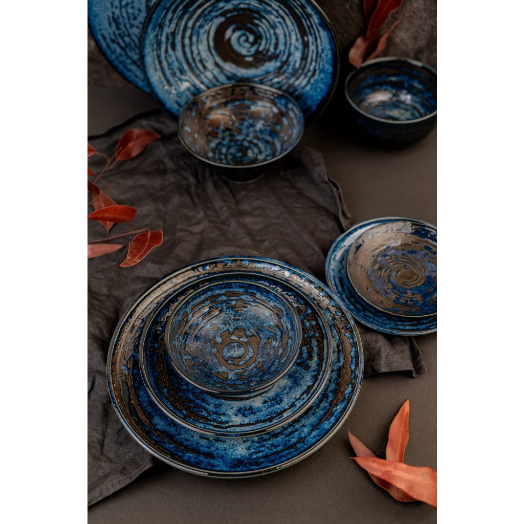 Den grunda förrättstallriken från Copper Swirl-kollektionen från MIJ är handgjord av hållbar naturlig keramik, som inte innehåller skadliga föroreningar eller tungmetaller. Den tillverkas av japanska mästare vars tradition går tillbaka till 1100-talet. Färgerna är av hög kvalitet, lossnar inte och innehåller inga skadliga ämnen.