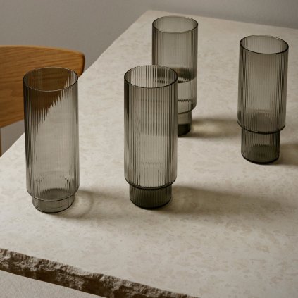 Vattenglas RIPPLE 200 ml, set i 4 delar, grå, fast LIVING