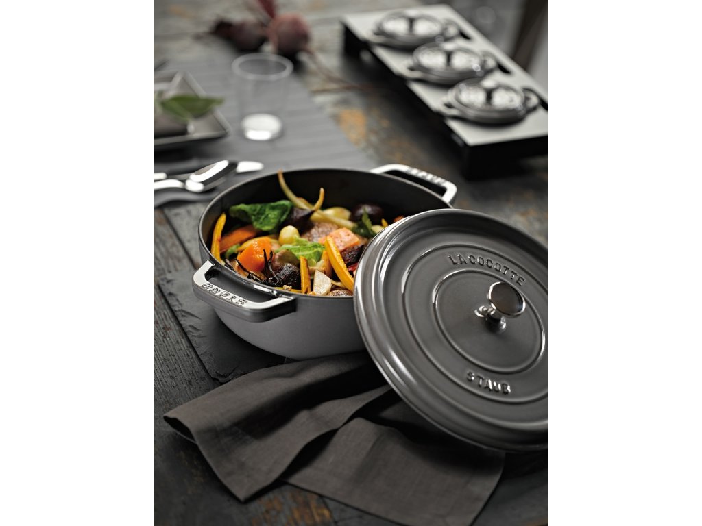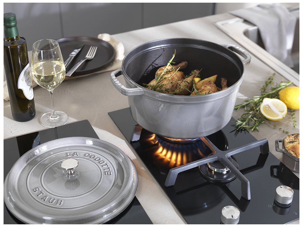 Ledande kockar älskar köksredskap i gjutjärn Staub för dess extraordinära egenskaper: det håller värmen länge, förhöjer matens smak och är praktiskt taget oförstörbart.
