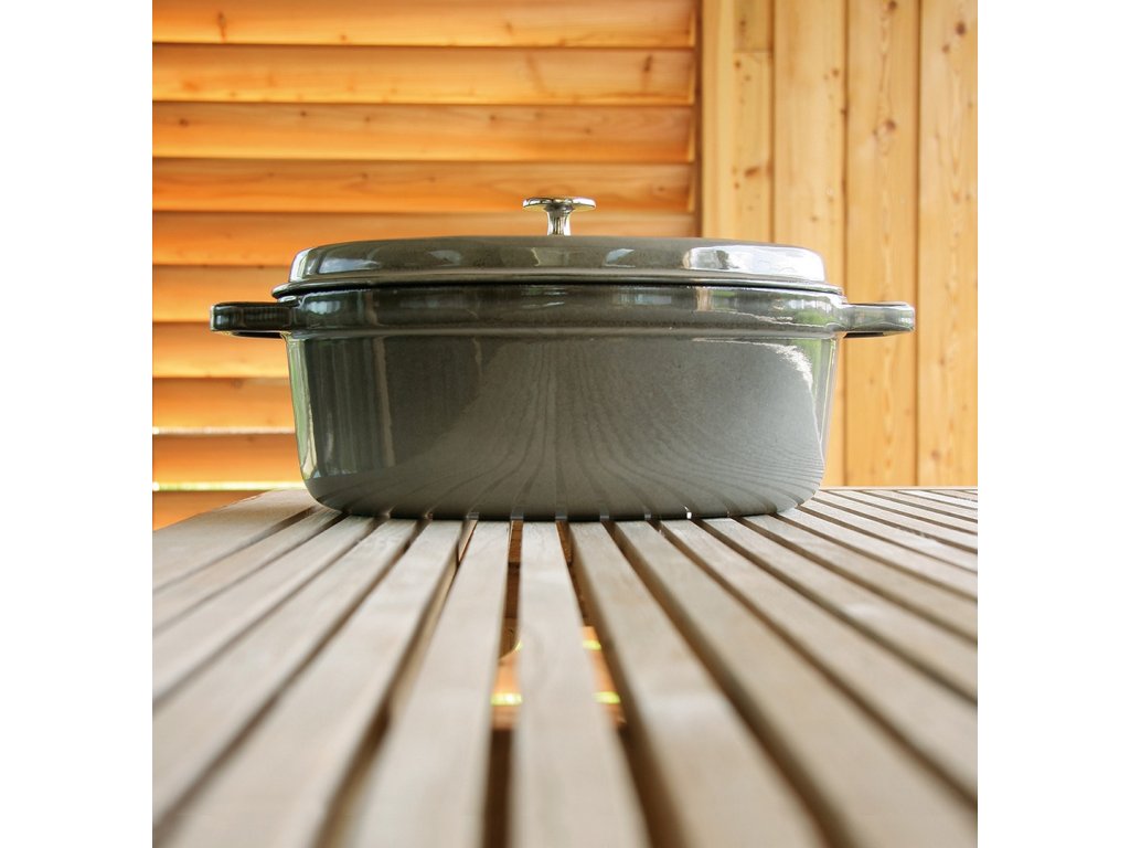 Den emaljerade innerytan är mattsvart och ser till att allt du tillagar i den blir utsökt och delikat. Sluten cirkulation och små utskjutande delar på lockets undersida skapar idealiska förutsättningar för långkok och bräsering.