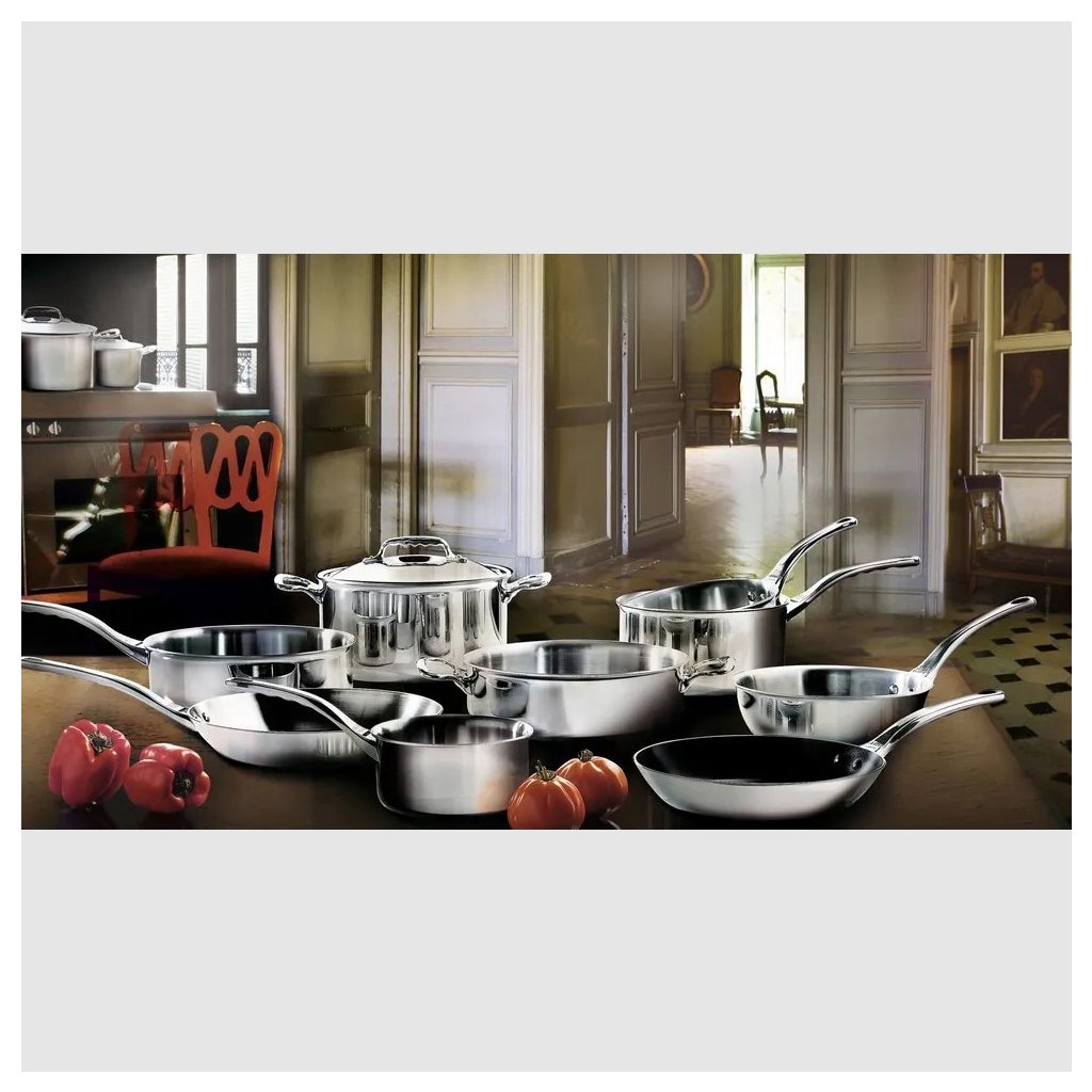 De högkvalitativa kokkärlen i rostfritt stål i Affinity-serien är tillverkade av ett femskiktsmaterial med en högglanspolerad yta. De vackert rundade formerna är tillverkade av ett enda material och tillsammans med de nitade handtagen och greppen är de kännetecken för det kvalitetshantverk som är kännetecknet för det välkända franska varumärket de Buyer typiskt för det franska varumärket.