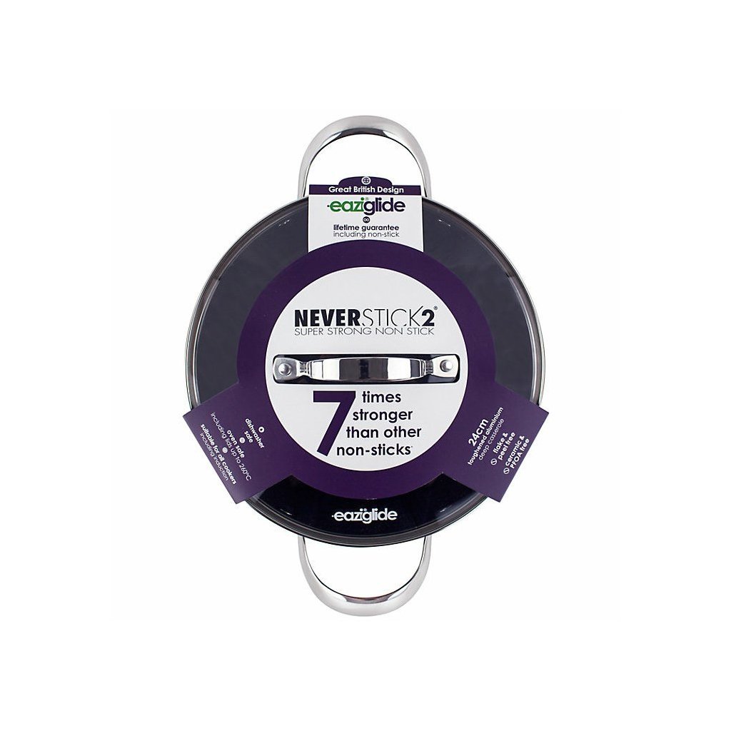 Neverstick2 köksredskap från Eaziglide representerar den senaste tekniken och revolutionerande innovationer inom non-stick köksredskap. Eaziglide Neverstick2, tillverkad i härdad aluminium, är speciellt utformad för att göra ditt liv enklare. Den exklusiva Neverstick2-ytan håller mycket längre än andra ytor och använder 7 gånger starkare teknik, så att du kan laga hälsosam mat utan olja eller andra fetter.