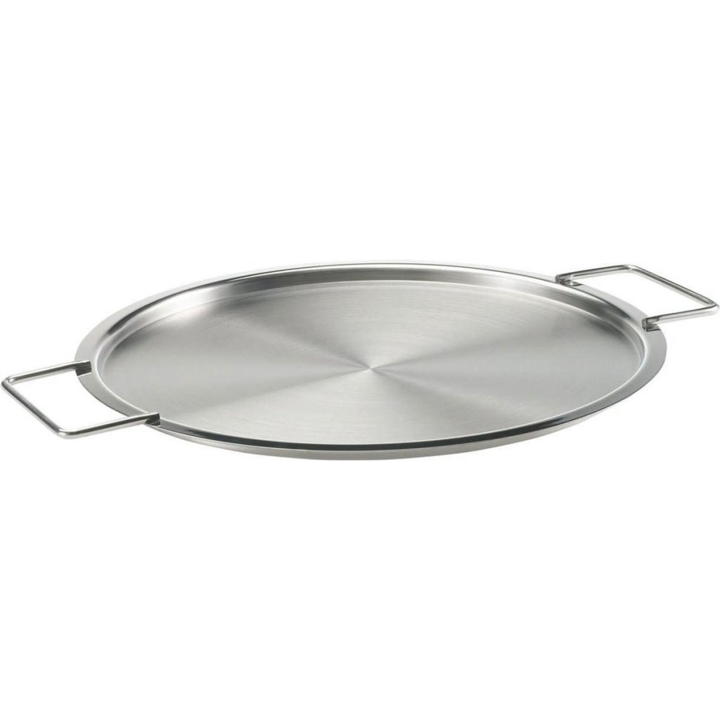 De platta locken i polerat rostfritt stål finns i flera storlekar. En annan kastrull kan enkelt placeras ovanpå det platta locket för förvaring och tar därmed inte upp onödigt utrymme. Kan diskas i maskin.