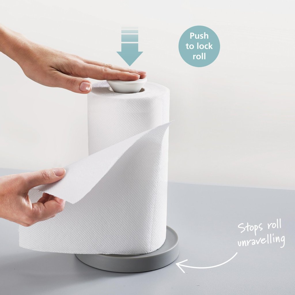- Joseph Joseph DUO ställ för hushållspapper erbjuder en praktisk och elegant lösning för dagligt bruk i köket, där du uppskattar snabb och bekväm avrivning av varje enskild bit.