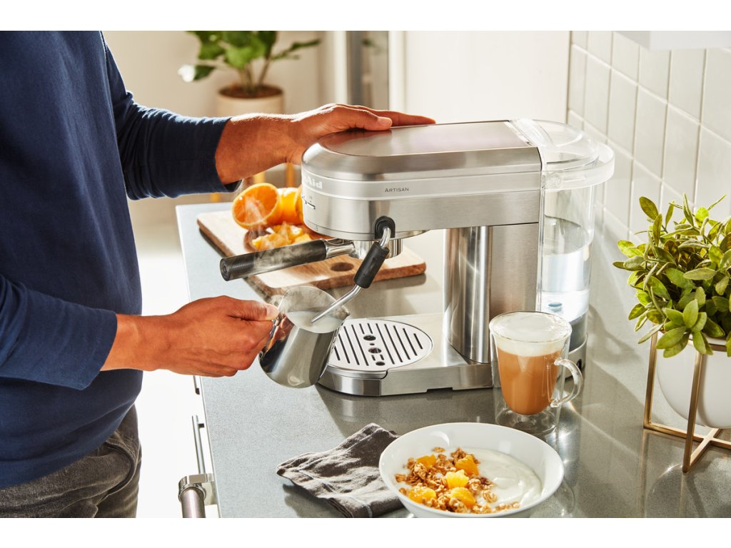 Vill du njuta av äkta espresso så som du vill ha den, varje dag i ditt hem? Är du orolig för att maskinerna för att tillverka sådan espresso är för stora och tar för mycket plats på köksbänken? Välkommen till familjen Artisan 5KES6503 halvautomatisk kaffemaskin med spak från KitchenAid i borstat rostfritt stål.