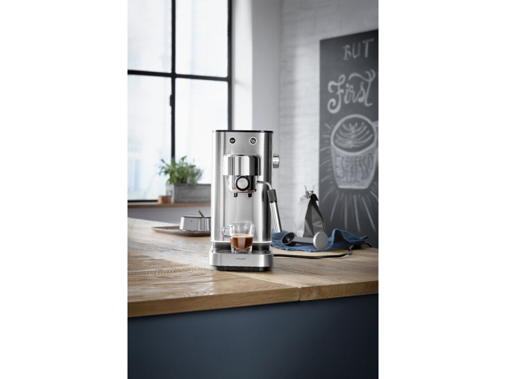 Lever kaffemaskin Lumero Tyskt varumärke WMF har tillverkats i en tidlös design av borstat rostfritt stål. Den klassiska designen helt i rostfritt stål tilltalar alla kaffeälskare.