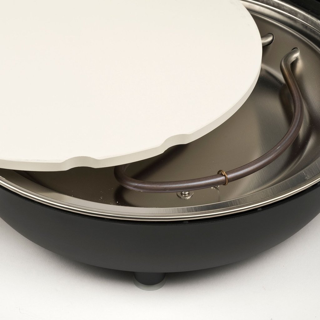 - Den värmebeständiga sten med en diameter på 31 cm är dubbelsidig, vilket möjliggör variabel användning beroende på vilken typ av mat som tillagas.