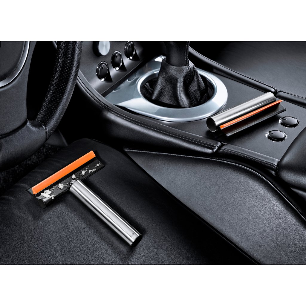 Företaget Eva Solo använder en enkel, distinkt design med en hög grad av funktionalitet för sina produkter. Den hopfällbara bilskrapan , ett oumbärligt hjälpmedel vid bilresor, är ett bevis på detta. Den hjälper dig att snabbt avlägsna frusen snö från dina fönster. Tack vare det mjuka gummit kan du dessutom enkelt ta bort annan smuts utan att repa glaset. Skrapan kan vikas ihop och fällas ut. Den tar inte upp plats i bilen och du har den alltid nära till hands.
