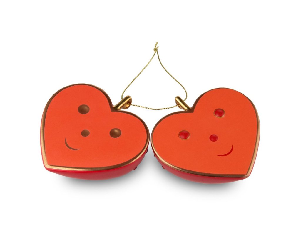 Julgransprydnaden CUORE E CUORA som föreställer ett hjärta i ett hjärta är en av de moderna julprydnader som kommer från kollektionen "Fleurs de Jor" designad av Marcello Jori för Alessi.