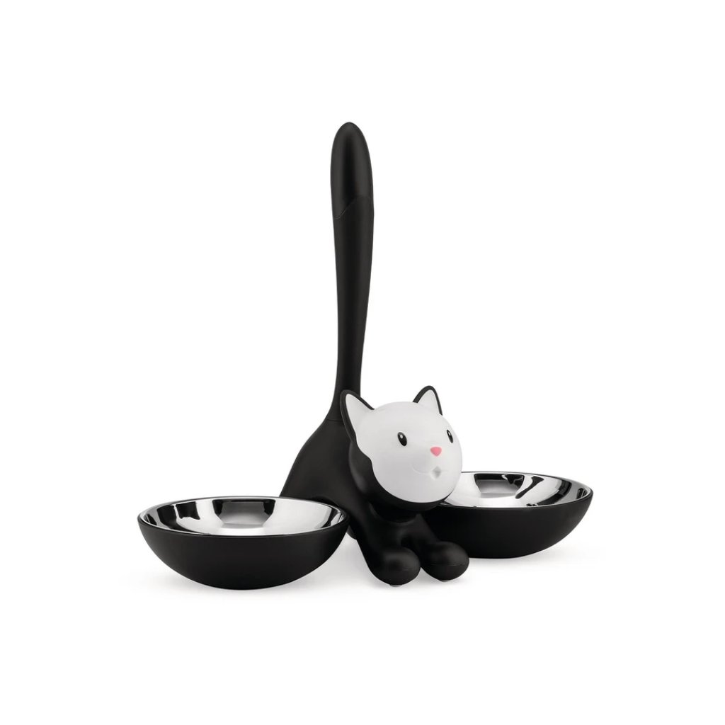 Tigrito kattskålar kommer inte bara att tillfredsställa våra fyrbenta vänner, utan också deras vårdgivare och kommer att bli en riktig dekoration i hemmet. De två löstagbara mat- och vattenskålarna är tillverkade av polerat rostfritt stål och den långa kattsvansen gör det enkelt att fylla på innehållet. En del av intäkterna från försäljningen av Tigrito-skålen doneras till djurskyddsorganisationen "GAIA Animali e Ambiente".