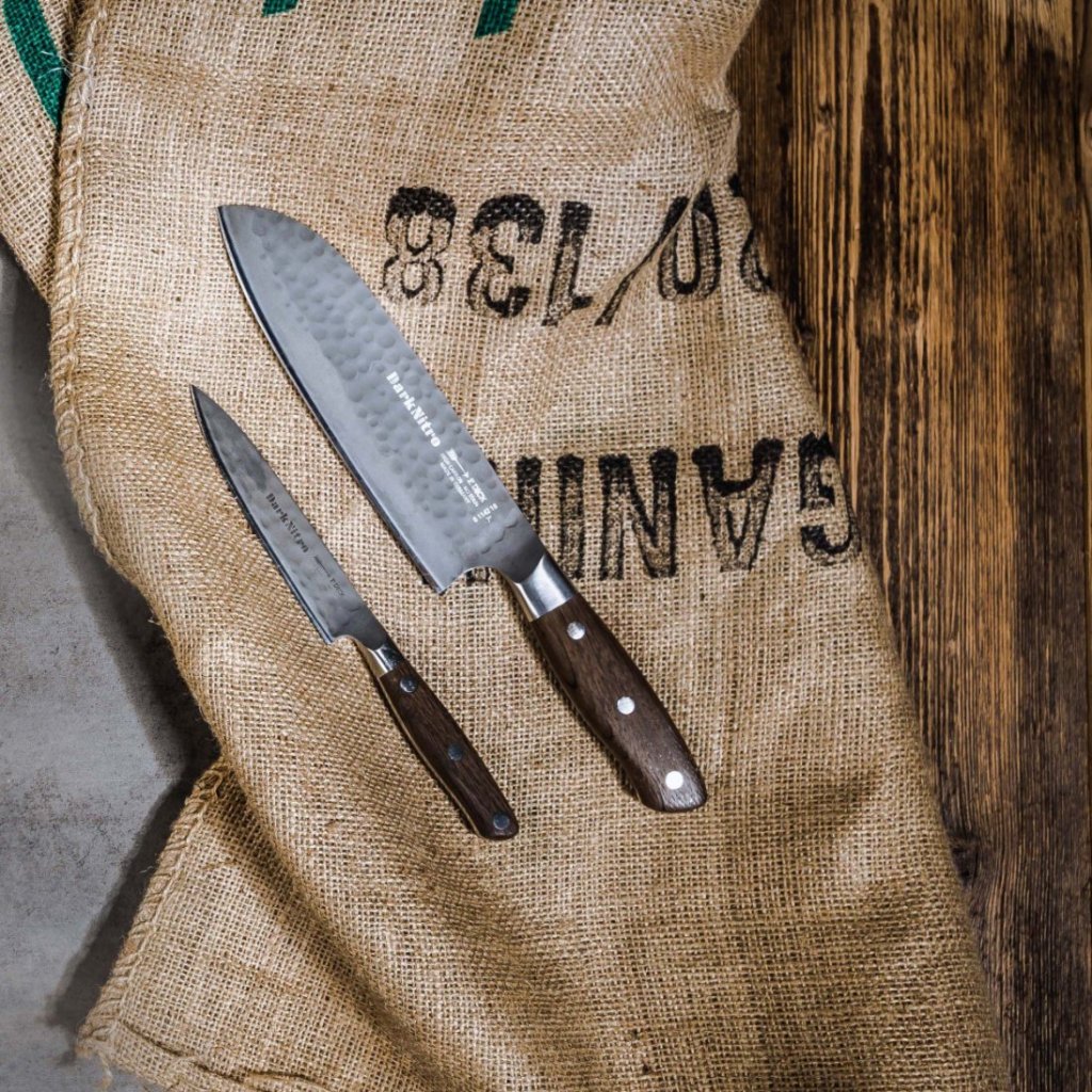 - material: martensitisk, kvävelegerad rostfritt stål, ädel ek trä