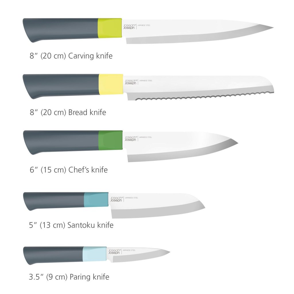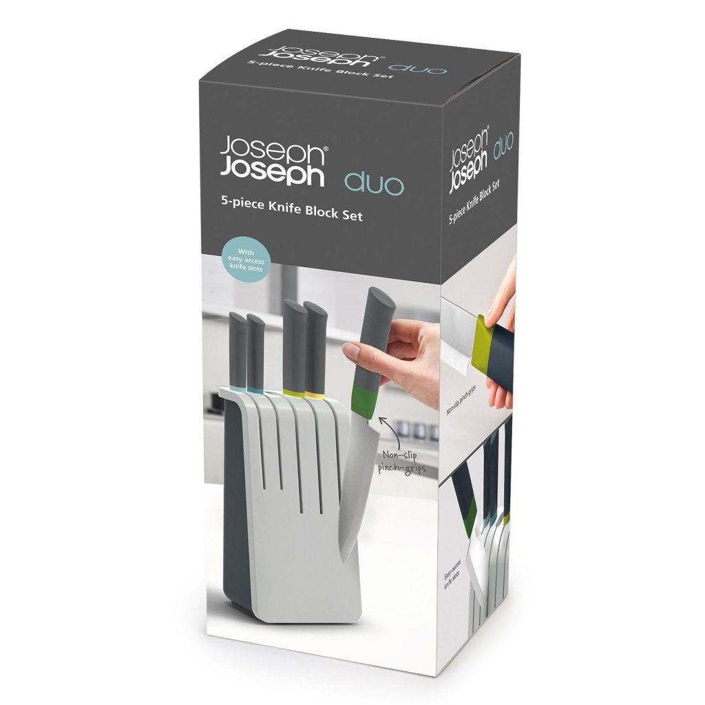 - Knivblocket Joseph Joseph DUO Àr en komplett lösning för daglig matförberedelse som kombinerar kvalitetsblad och tydlig förvaring pÄ ett stÀlle.