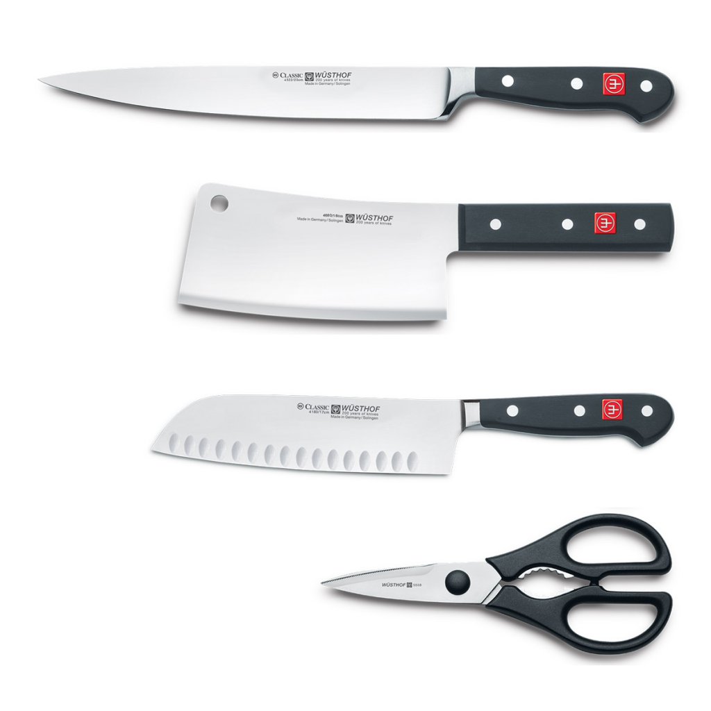 Classic-serien av kniv ar visar perfekt knivtillverkningskonsten hos varumärket WÜSTHOF. Det är det mest populära sortimentet i varumärkets sortiment WÜSTHOF, och inte bara på grund av dess höga användarkomfort. Det här är klassiska knivar med nitade handtag, vars blad är smidda i ett stycke av legerat rostfritt stål X50CrMoV15. Tack vare användningen av högkvalitativa material och precisionsslipning har de en hög och långvarig skärpa. De mycket funktionella Classic-knivarna är tillverkade med stor omsorg in i minsta detalj. Exakt som förväntat från Solingen knivar. Efter första användningen vill du inte ha någon annan kniv..