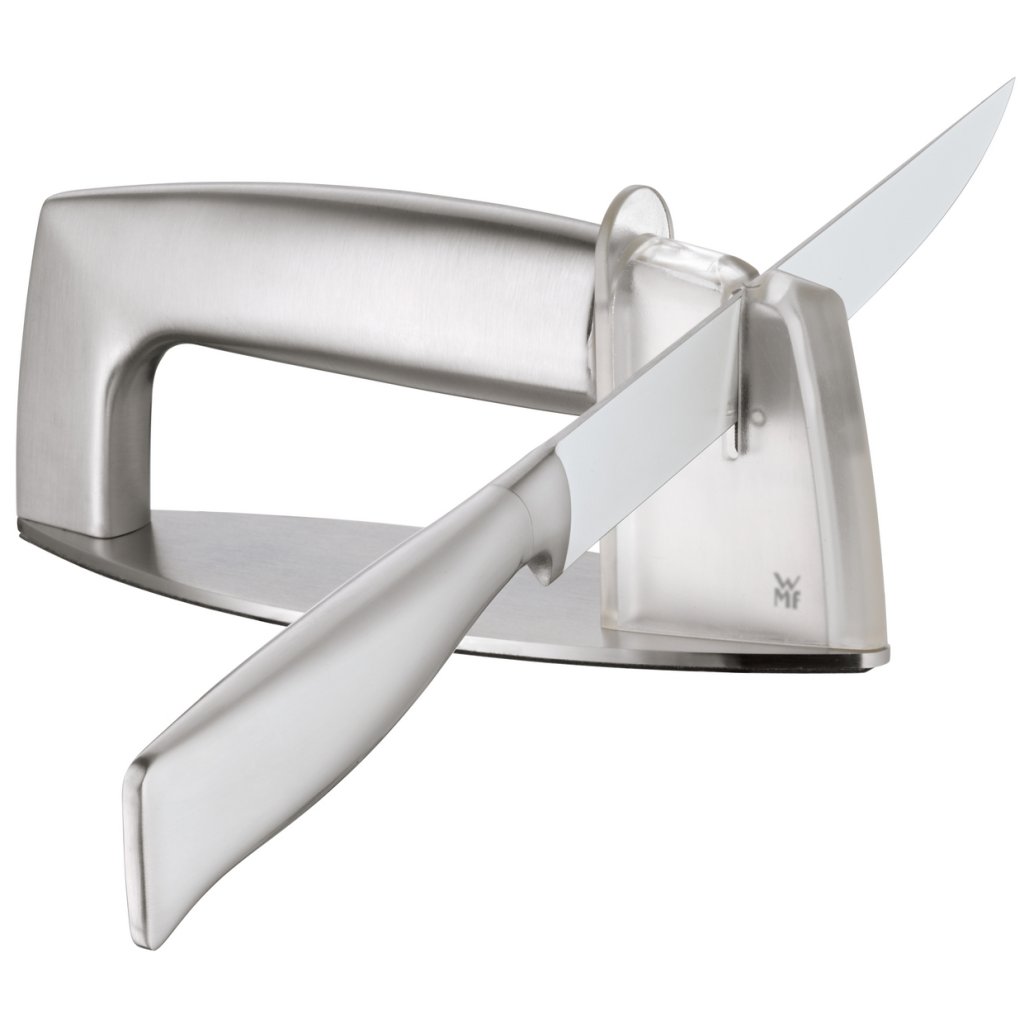 Även de bästa knivarna förlorar sin skärpa vid användning och måste slipas. Kvarnen i rostfritt stål WMF är ett perfekt verktyg för alla kök. Den är stabil, enkel att använda och lätt att underhålla. Den är tillverkad av hållbart 18/10 Cromargan® rostfritt stål. Slipytan är tillverkad av extremt hård metall, vilket gör det möjligt att slipa knivarna perfekt. Kvarnens utmärkta egenskaper uppskattas också av proffs.
