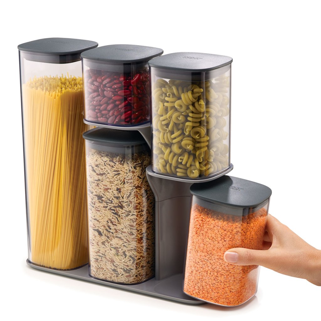 Köksförvaringsburkar set PODIUM 5, med stativ, Joseph Joseph