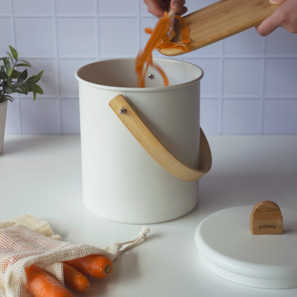 Kompost NBA193 4,5 l, vit, stål / bambu, Pebby