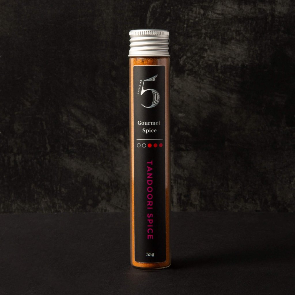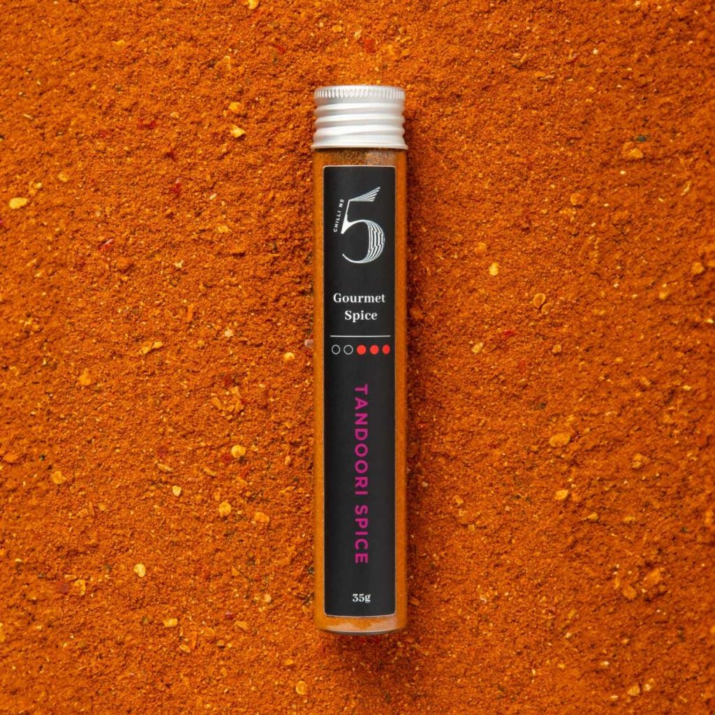 - TANDOORI SPICE från Chilli No5 är en gourmetkryddblandning inspirerad av traditionell tandoorikökning från den indiska subkontinenten, känd för sin rökiga, aromatiska och kryddiga smak.