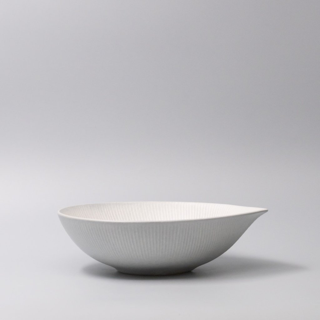 - Den graverade strukturen på ytan ger skålen ett djup och understryker den handgjorda karaktären hos det keramiska hantverket.