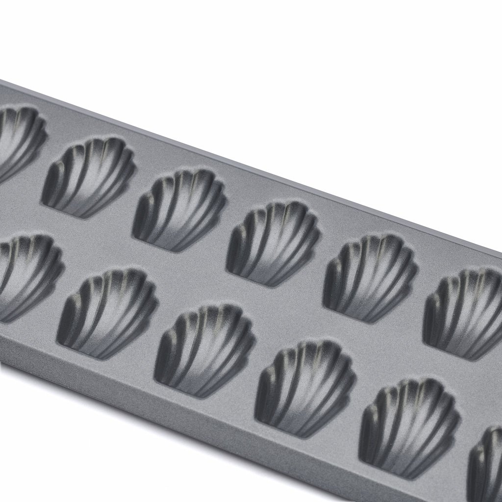 - konstruktion av kraftigt stål gör att höga temperaturer kan uppnås, vilket hjälper degen att karamelliseras och de bakade madlenas att få en rik färg