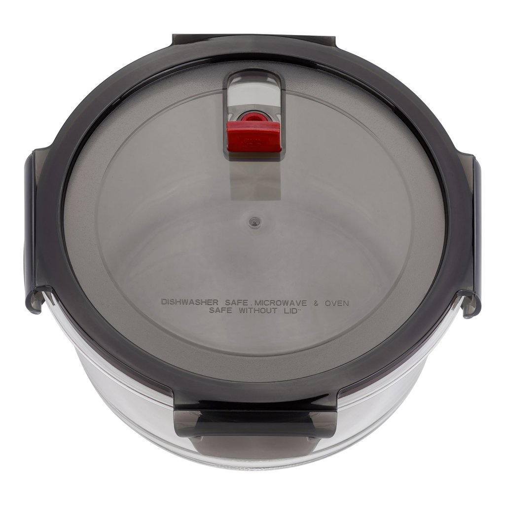 Gusto multifunktionsskål är tillverkad av värmebeständigt glas och kan därför användas för bakning i både vanliga ugnar och mikrovågsugnar. Tack vare det läckagesäkra locket med perfekt tätning är den också ett praktiskt verktyg för förvaring eller transport av mat. Locket är också utrustat med en enkel stängningsmekanism, så du kan vara säker på att inte en droppe kommer att läcka ut ur behållaren.