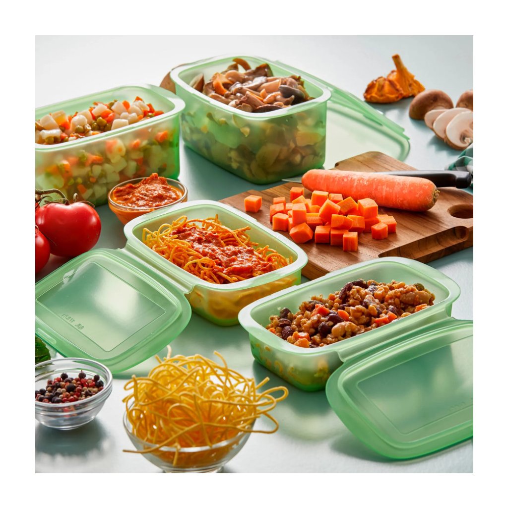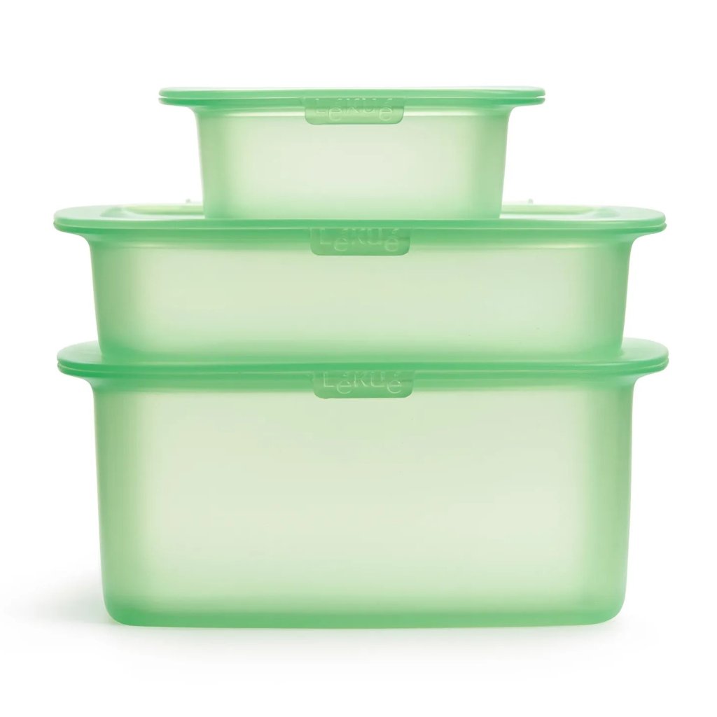 Matförvaringsbehållare REUSE OCH REDUCE, set i 3 delar, grön, silikon, Lékué
