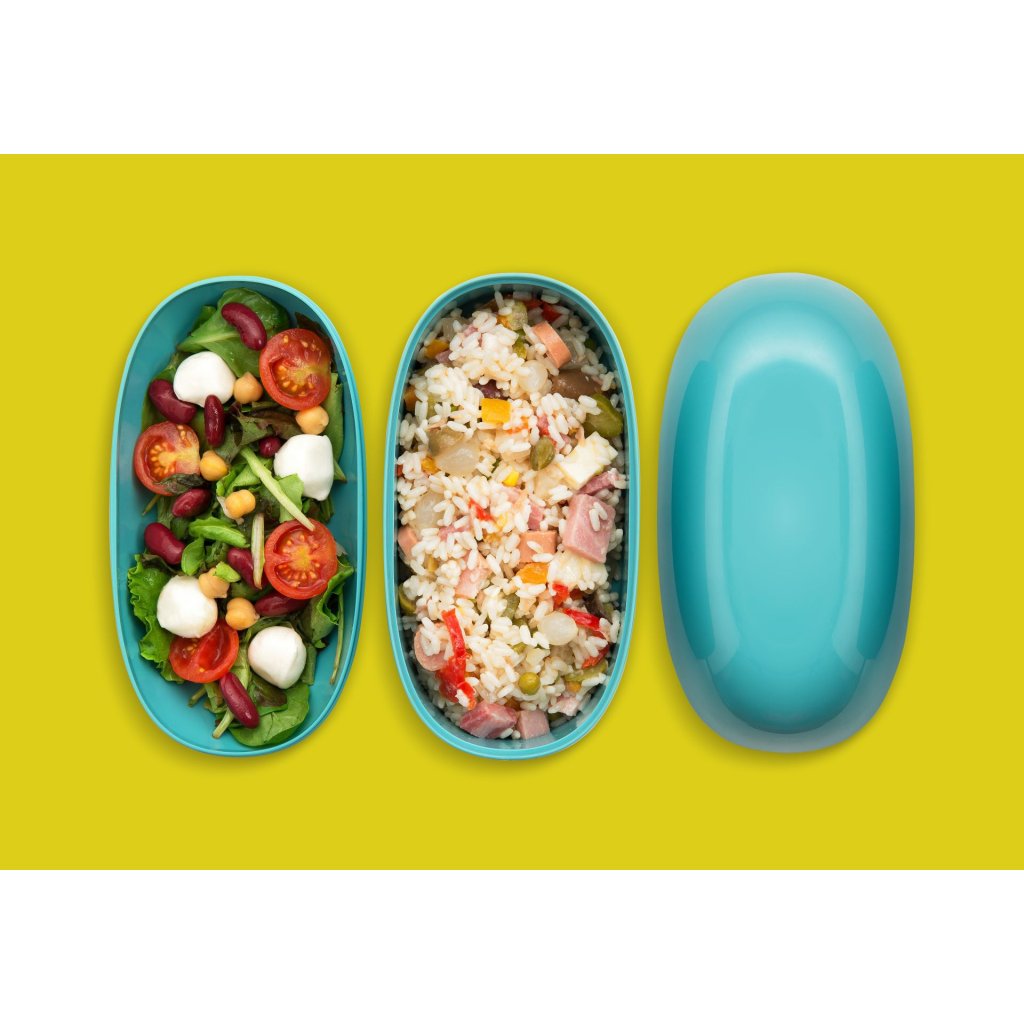 Food à porter är en lunchlåda som inte ser ut som en lunchlåda, utan snarare som en sofistikerad modeaccessoar. Långt ifrån den anonyma designen hos traditionella matbehållare presenterar Alessi en rymlig, kompakt och mångsidig mellanmåls-/lunchlåda, uppdelad i två fack med ett praktiskt multifunktionellt innerlock. Perfekt för dig som vill njuta av hemlagad mat eller för dig som följer en specifik diet.