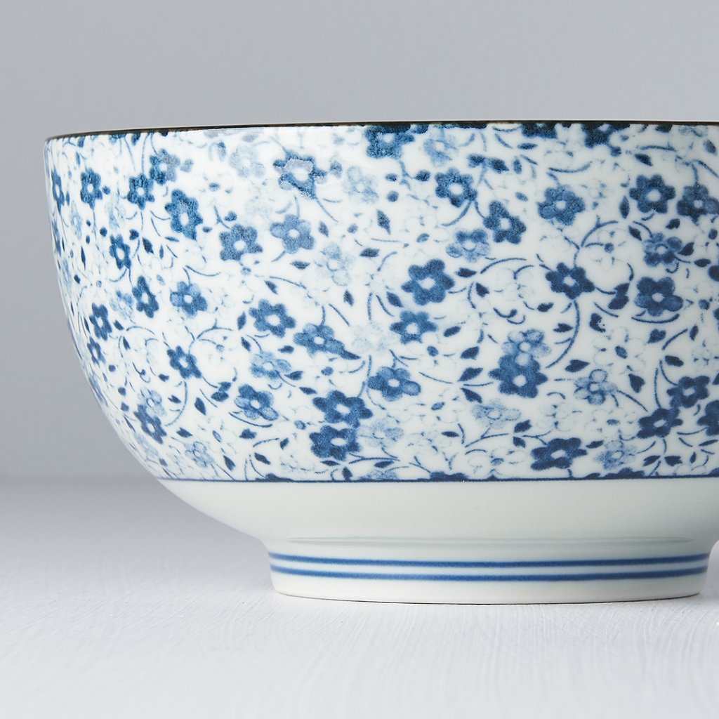 Den medelstora skålen från Blue Daisy-kollektionen från MIJ är handgjord av hållbar naturlig keramik, som inte innehåller skadliga föroreningar eller tungmetaller. Den tillverkas av japanska mästare vars tradition går tillbaka till 1100-talet. Färgerna är av hög kvalitet, lossnar inte och innehåller inga skadliga ämnen.