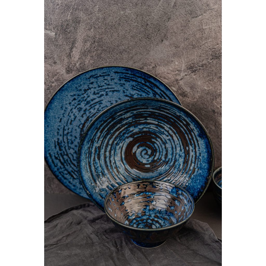 Den medelstora skålen från Cobalt Blue-kollektionen från MIJ är handgjord av hållbar naturlig keramik, som inte innehåller skadliga föroreningar eller tungmetaller. Den tillverkas av japanska mästare vars tradition går tillbaka till 1100-talet. Färgerna är av hög kvalitet, lossnar inte och innehåller inga skadliga ämnen.