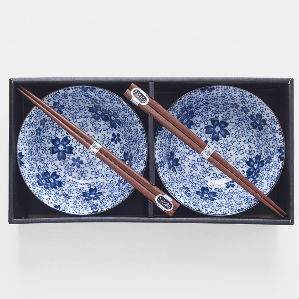 Matskål WHITE WITH BLUE BLOSSOM, set i 2 delar med ätpinnar, 400 ml, MIJ