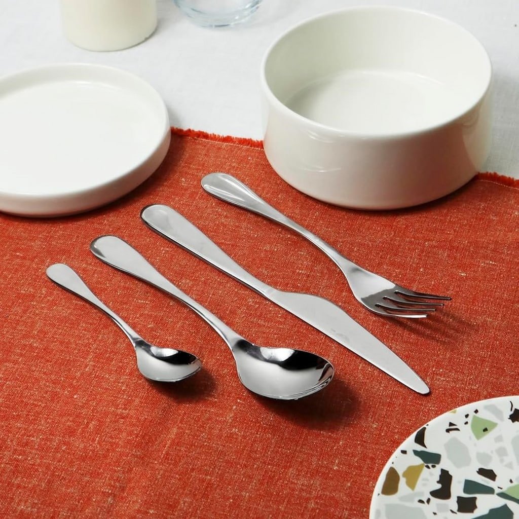 - middagsbestickset för 6 personer innehåller 24 delar: 6 gafflar, 6 knivar, 6 skedar och 6 teskedar, perfekt för vardagsbruk och festliga tillfällen