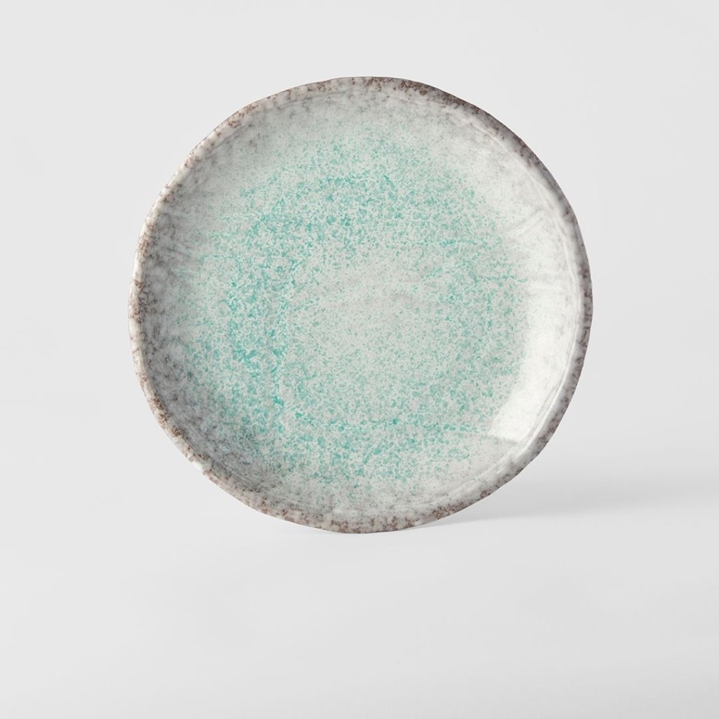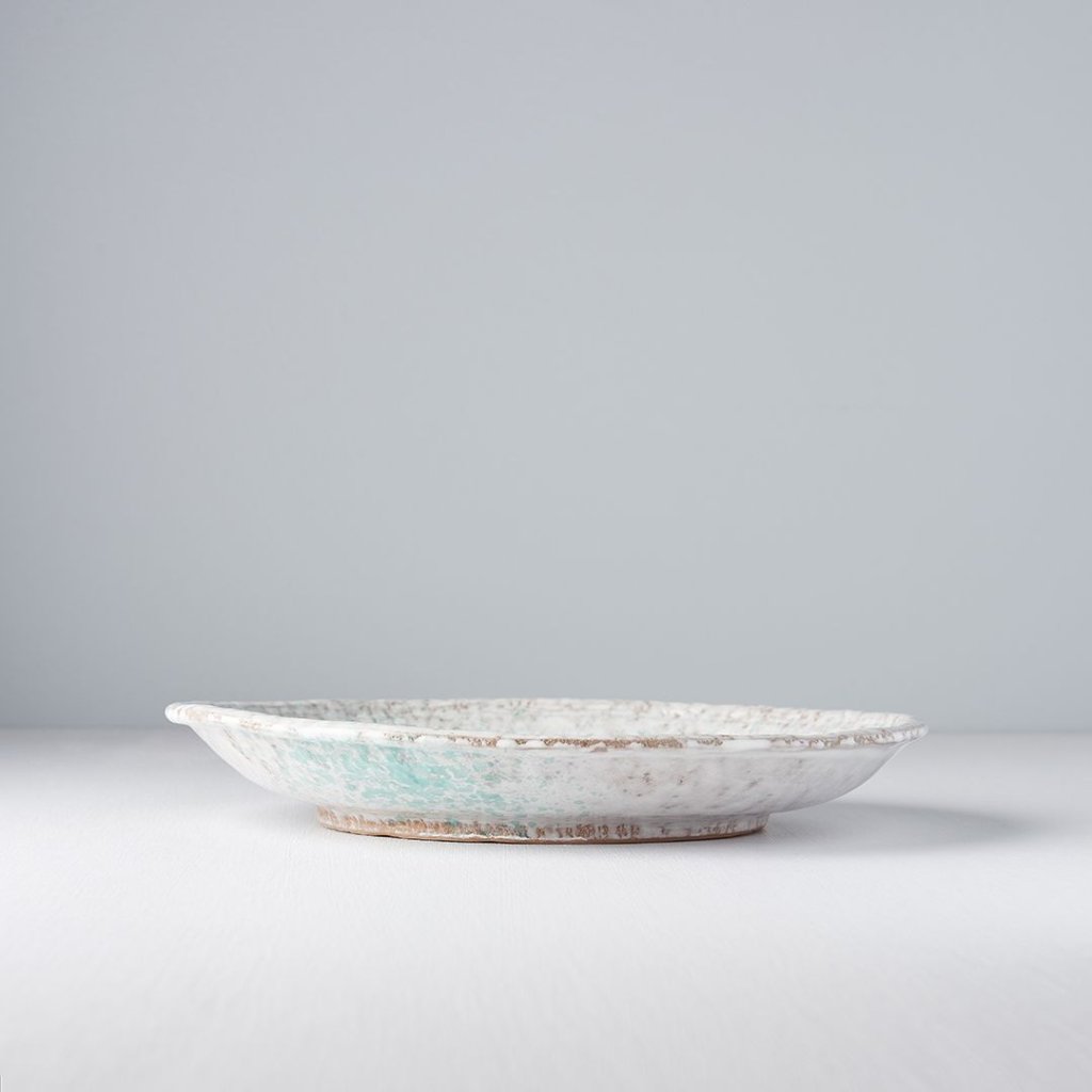 - Den oregelbundna kanten ger tallriken en hantverksmässig karaktär och skapar en naturlig dynamik i serveringen.
