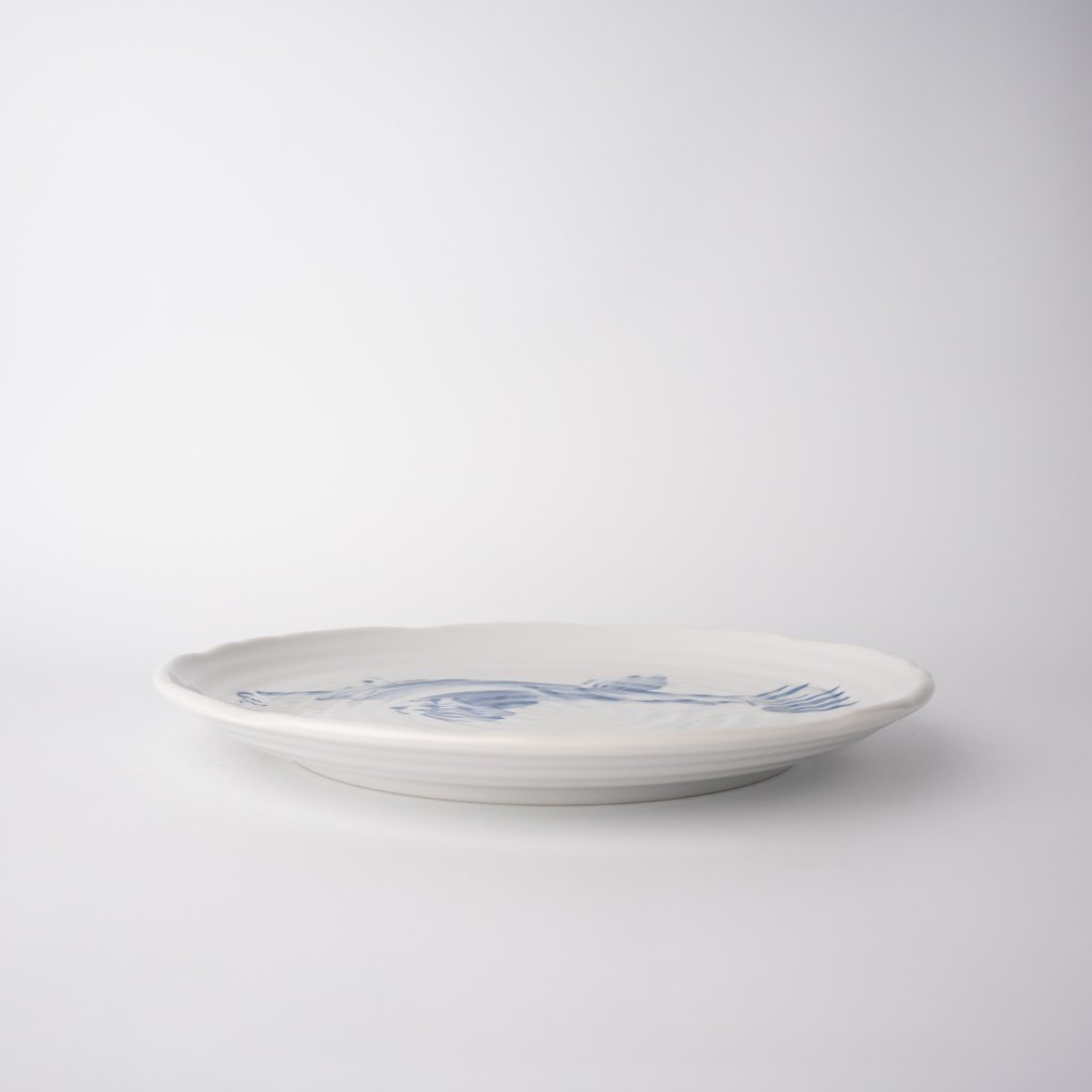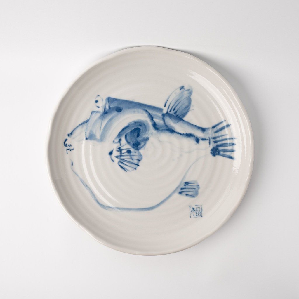 Den här tallriken passar perfekt när du vill få dina gäster att le innan de ens har smakat något. Den blåvita Fugu ser vänlig ut, lite förvånad och väldigt "instagram". Oavsett vad man lägger på den får den alltid en air av älskvärd absurditet.